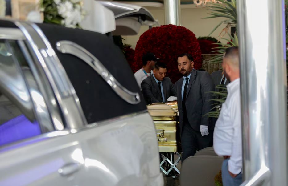 Sepelio de “El Mencho”: En un ataúd dorado, con música de banda y grúas con coronas de flores